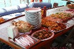 Öğle yemeği 8 çeşit soğuk meze ve salatalar ile başlamakta olup. Sıcak servis yapılan tavuk ve balık seçenekleri de hazır. İsteyen balık yer, isteyen tavuk ya da her ikisi.. Afiyet olsun.
