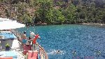 Göcek limanından hareketimiz sonrası çay ikramı ile güne başlıyoruz. İlk durağımız yaklaşık 45 dakikalık seyir sonrası ulaşacağımız Bedri Rahmi koyu olacak. Berdri Rahmi koyuna demirleyen teknemiz sizi Ege Denizinin mavi suları ile buluşturmaya hazır. Siz de hazırsanız eğer, şimdi yüzme zamanı. Güneşin tadını çıkarmak, bronzlaşmak isteyen konuklarımız için kendi güneşlenme minderlerinde akşama kadar güneşlenmek mümkün. Bedri Rahmi koyununun masmavi sularında yüzerek, güneşlenerek geçirebileceğiniz 1 saatiniz var tadını çıkarın. Adrenalin tutkunları yatımızın atlama rampası sizleri bekliyor.